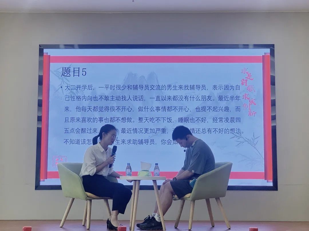 8月17日,福建船政交通職業(yè)學院輔導員素質(zhì)能力大賽圓滿落幕。經(jīng)過初賽的激烈角逐,我院輔導員張舒姨順利進入決賽。本次決賽由案例研討和談心談話兩輪測試組成,著重考察輔導員綜合運用理論分析問題、研判問題、解決問題的能力,對學生特征、學生成長成才規(guī)律的了解把握程度及對學生的教育引導能力、解決理論困惑和實際問題的能力等。