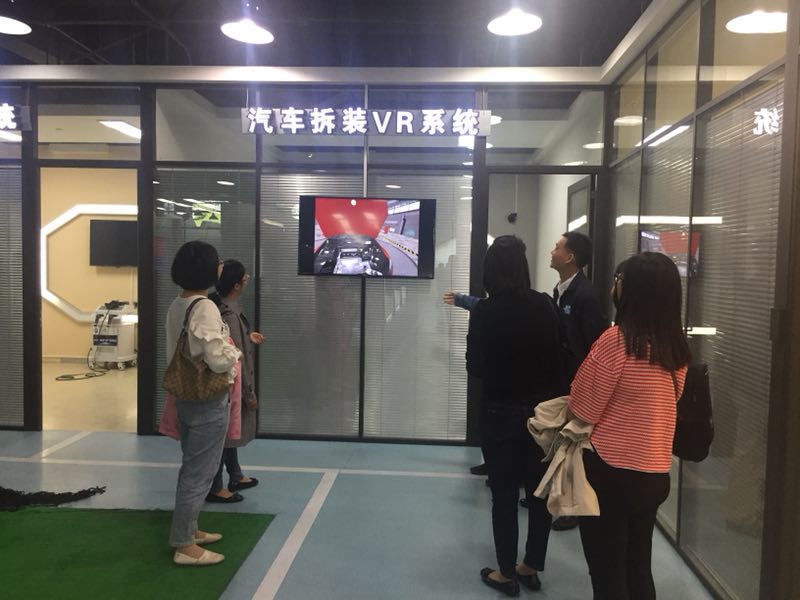 隨后,我支部黨員觀看VR+行業(yè)應(yīng)用體驗(yàn)館。黨員教師對(duì)叉車駕駛、汽車拆裝VR系統(tǒng)、焊接VR系統(tǒng)、噴涂VR系統(tǒng)等行業(yè)尖端科技現(xiàn)場(chǎng)體驗(yàn)。將VR技術(shù)引入課堂,可以讓學(xué)習(xí)變得直觀、形象、生動(dòng),激發(fā)學(xué)生的學(xué)習(xí)興趣和熱情;將汽車拆裝、焊接、涂裝等課程結(jié)合VR技術(shù),可以把汽車零件和焊接、涂裝過(guò)程逼真地展示在學(xué)生眼前,提高學(xué)生的學(xué)習(xí)積極性和學(xué)習(xí)效果。