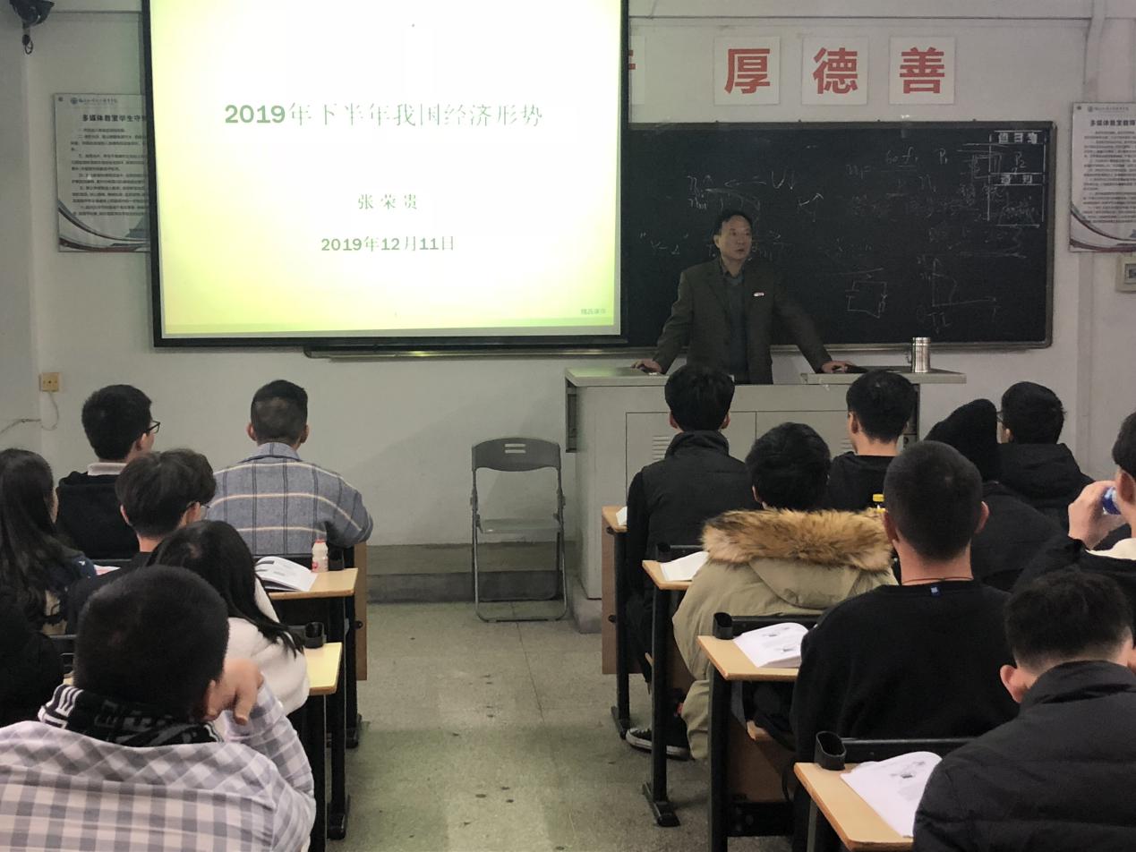 2019年12月11日,汽車運用工程系在汽車系22號樓203教室舉辦了2019年下半年我國經(jīng)濟形勢專題講座。講座由汽車運用工程系主任張榮貴主講。