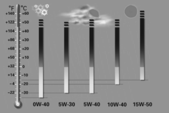 例如:5W/30:-25℃~+30℃ ;10W/40:-20℃~+40℃。