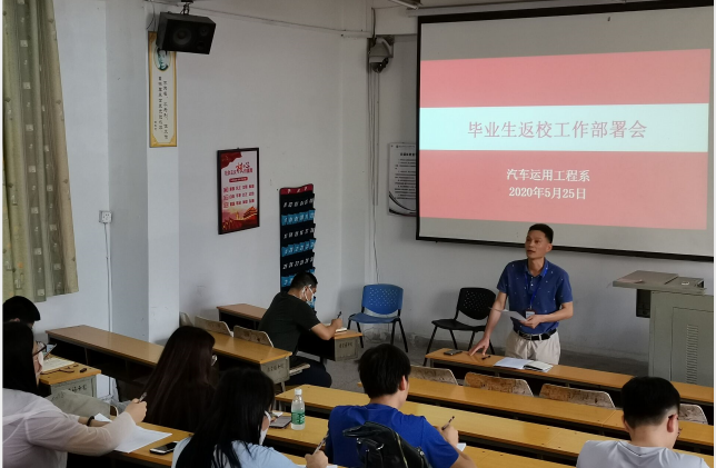 2020年5月25日下午,汽車系黨總支書記蔡華錦主持召開2020屆畢業(yè)生返校工作部署會。系主任張榮貴、系副主任林可春、蘇慶列、全體輔導(dǎo)員、畢業(yè)班班主任參加會議。