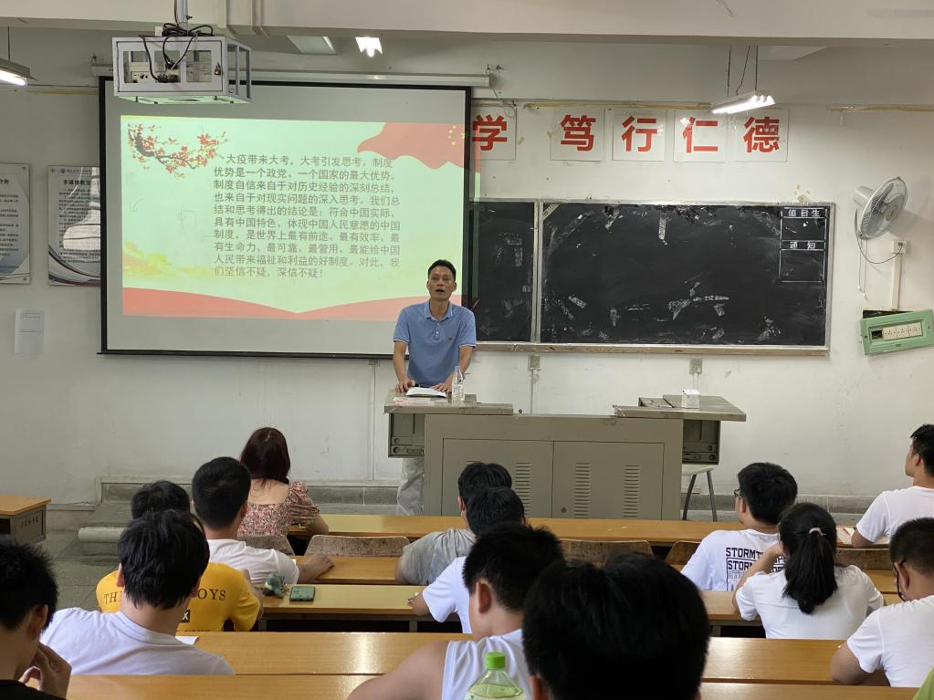 蔡華錦書記以“我國制度優(yōu)勢在抗擊疫情中的力量彰顯”為題,從領(lǐng)導(dǎo)力量的彰顯,思想力量的彰顯,國家力量的彰顯,人民力量的彰顯,道德力量的彰顯五個方面論述中國用一個多月的時間初步遏制了疫情蔓延勢頭,用三個月左右的時間取得了武漢保衛(wèi)戰(zhàn)、湖北保衛(wèi)戰(zhàn)的決定性成果,疫情防控阻擊戰(zhàn)取得重大戰(zhàn)略成果。回顧和總結(jié)抗擊疫情整個過程,對同學(xué)們進(jìn)一步深刻認(rèn)識我國制度的顯著優(yōu)勢具有重要意義。英勇抗擊新冠肺炎疫情是試金石,是教科書,是教育廣大青年學(xué)生增強(qiáng)“四個意識”、堅(jiān)定“四個自信”、做到“兩個維護(hù)”,深入開展理想信念教育、弘揚(yáng)社會主義核心價值觀提供了“生動教材”。