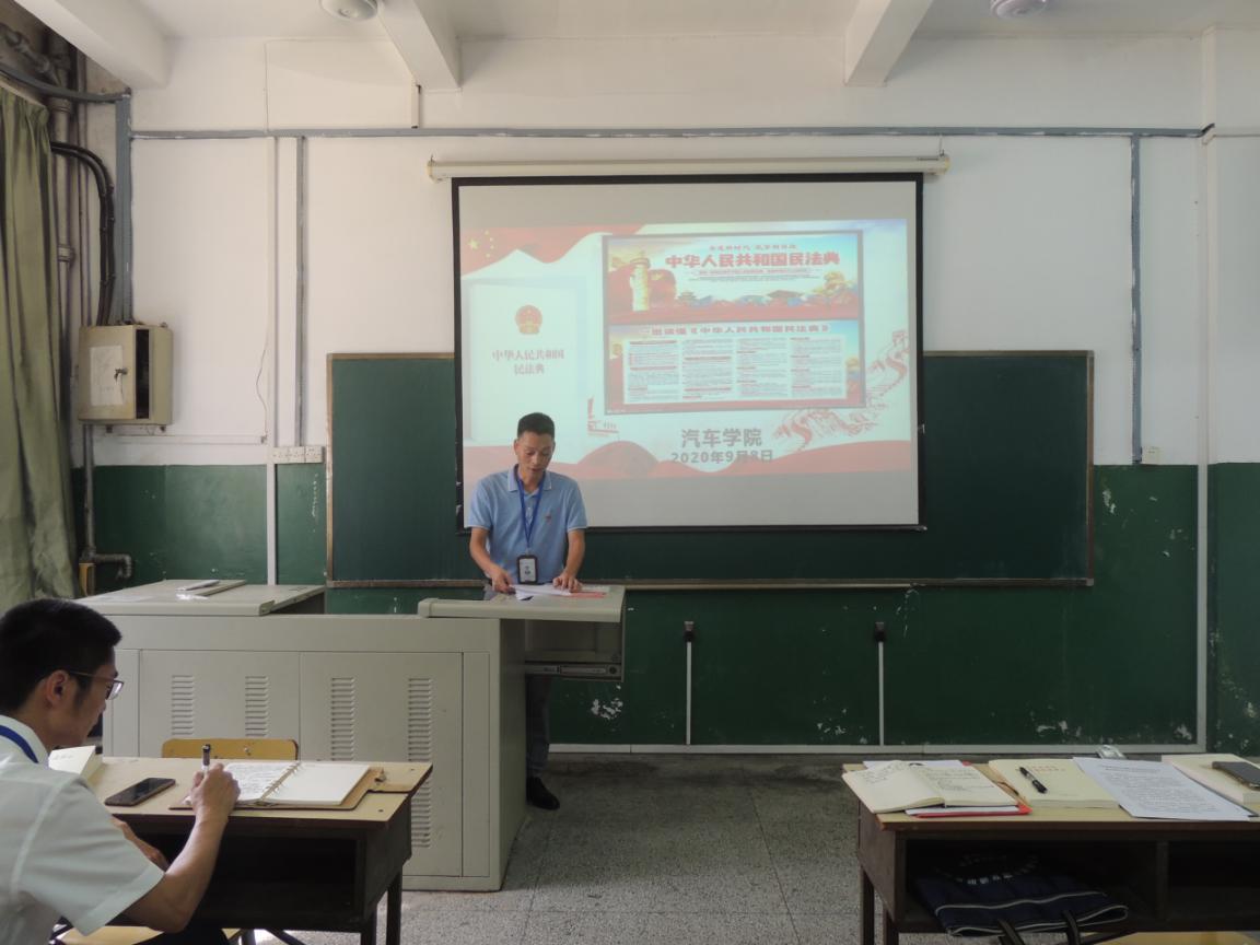 2020年9月18日下午在10號(hào)樓104教室,汽車(chē)學(xué)院組織全體教職工和學(xué)生代表學(xué)習(xí)《中華人民共和國(guó)民法典》。
