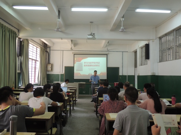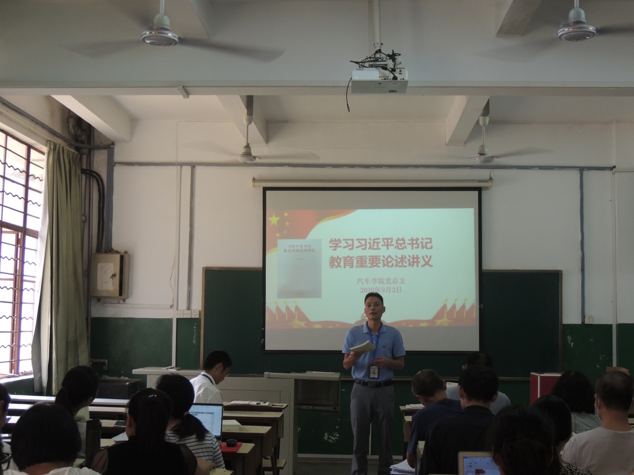 2020年9月2日下午汽車學(xué)院黨總支在10號(hào)樓104教室召開全體教職工大會(huì),會(huì)上黨總支書記蔡華錦組織教職工學(xué)習(xí)《習(xí)近平總書記教育重要論述講義》,蔡華錦要求各黨支部要通過集中宣講、專題講座、集中研討等多種方式,組織師生認(rèn)真使用《講義》,交流學(xué)習(xí)心得、撰寫學(xué)習(xí)體會(huì),全體師生深入學(xué)習(xí)貫徹習(xí)近平總書記關(guān)于教育的重要論述的科學(xué)內(nèi)涵、核心要義、精神實(shí)質(zhì)、實(shí)踐要求、重大意義,更好地用這一重要論述武裝頭腦、指導(dǎo)實(shí)踐、推動(dòng)工作。