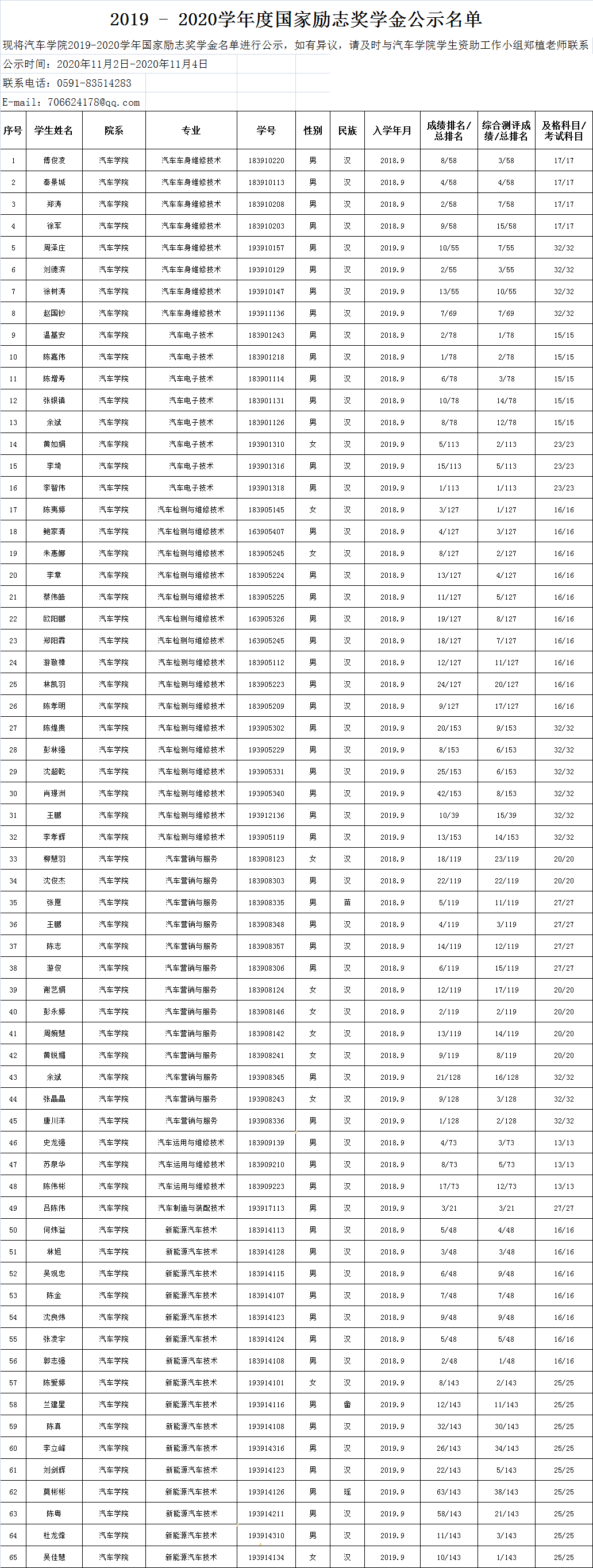 2019-2020學(xué)年度國家勵志獎學(xué)金公示名單