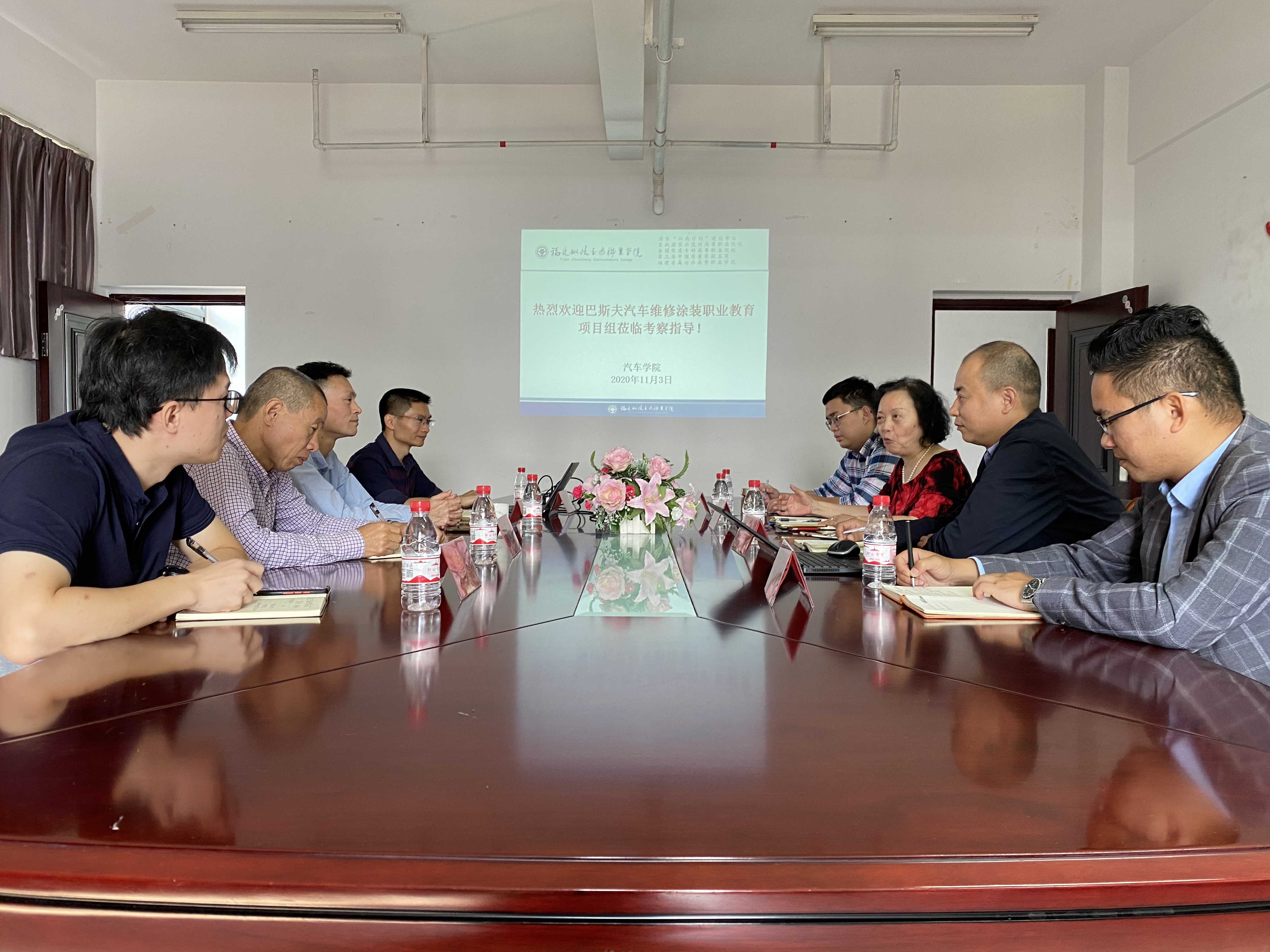 2020年11月3日上午,巴斯夫汽車維修涂裝職業(yè)教育項(xiàng)目高級(jí)顧問(wèn)、機(jī)械行指委競(jìng)賽與資源專委會(huì)副主任戴育紅女士一行4人蒞臨我校汽車學(xué)院考察指導(dǎo)。為進(jìn)一步深化產(chǎn)教融合,圍繞汽車涂裝項(xiàng)目校企合作等相關(guān)事宜,在汽車學(xué)院9樓會(huì)議室召開交流研討會(huì),并參觀汽車實(shí)訓(xùn)室。汽車學(xué)院黨政領(lǐng)導(dǎo)和專業(yè)骨干教師等相關(guān)人員出席會(huì)議。