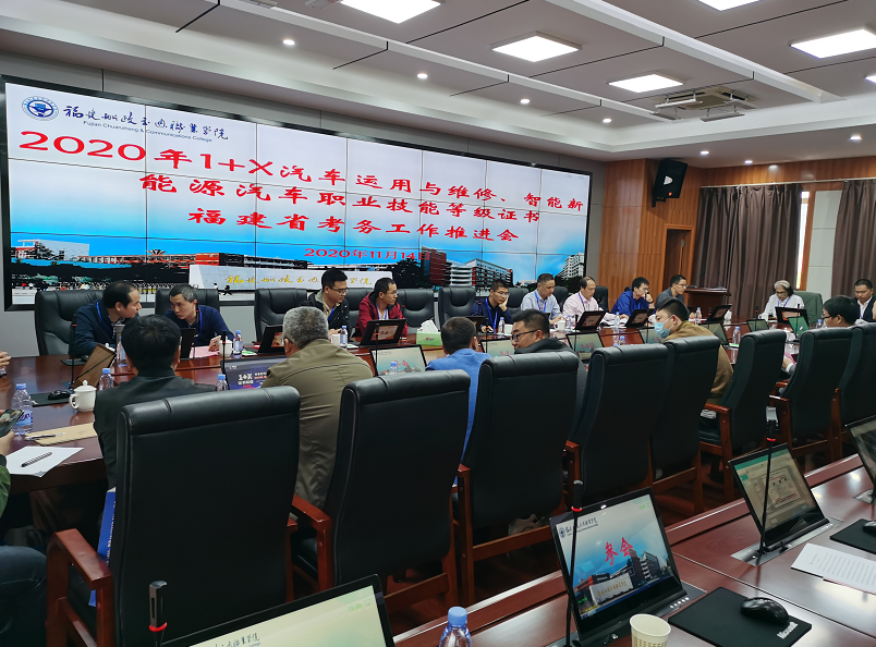 2020年11月14日下午,福建省2020年中車行1+X汽車運用與維修、智能新能源汽車職業(yè)技能等級證書考務(wù)工作推進會在福建船政交通職業(yè)學(xué)院隆重舉行。本次會議由福建船政交通職業(yè)學(xué)院主辦,北京中車行高新技術(shù)有限公司為技術(shù)支持單位。中車行高新技術(shù)有限公司常務(wù)副秘書長張珉豪、全省50多位職業(yè)院校相關(guān)專業(yè)負責(zé)人、專業(yè)帶頭人、骨干教師和實訓(xùn)指導(dǎo)老師出席了考務(wù)推進會。