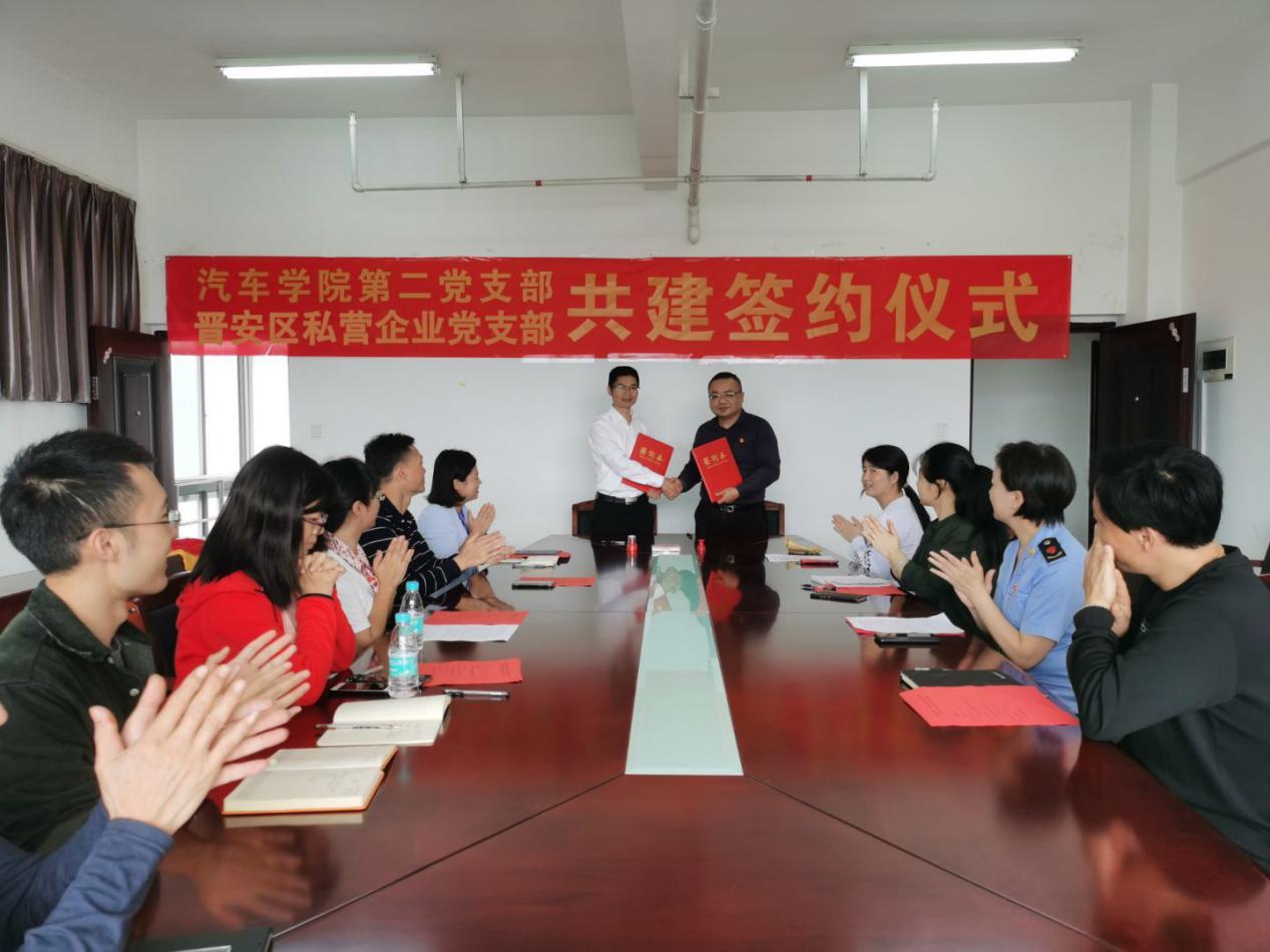 為貫徹落實黨中央關(guān)于加強城市非公黨建工作的部署要求,進一步推動學(xué)校黨組織融入城市非公黨建工作,推動校企基層黨組織交流、合作與共同發(fā)展,2020年11月19日上午,福建船政交通職業(yè)學(xué)院汽車學(xué)院第二黨支部與福州市晉安區(qū)私營企業(yè)黨支部簽訂黨支部合作共建協(xié)議。中共福州市市場監(jiān)督管理系統(tǒng)兩新組織委員會副書記黃紅霞、中共福州市私營企業(yè)委員會組織委員劉春紅、中共福州市晉安區(qū)私營企業(yè)支部委員會書記程元泉、中共福建船政交通職業(yè)學(xué)院汽車學(xué)院黨總支書記蔡華錦、汽車學(xué)院第二黨支部書記蘇慶列等出席了儀式。