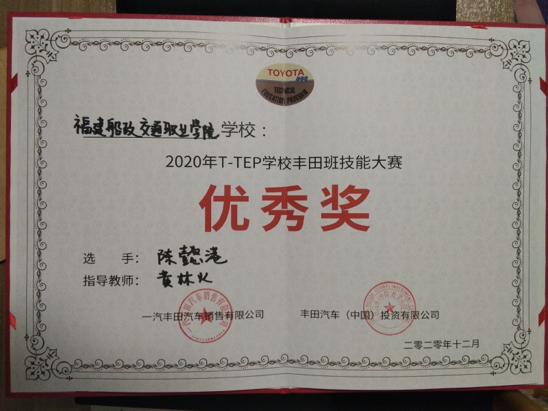 2020年T-TEP豐田班學(xué)生技能大賽由豐田T-TEP事務(wù)局第一次舉辦,由全國32所豐田T-TEP合作院校選派選手參加。福建船政汽車學(xué)院在今年的豐田班學(xué)生中,通過校內(nèi)預(yù)賽后選取了一名選手參賽。