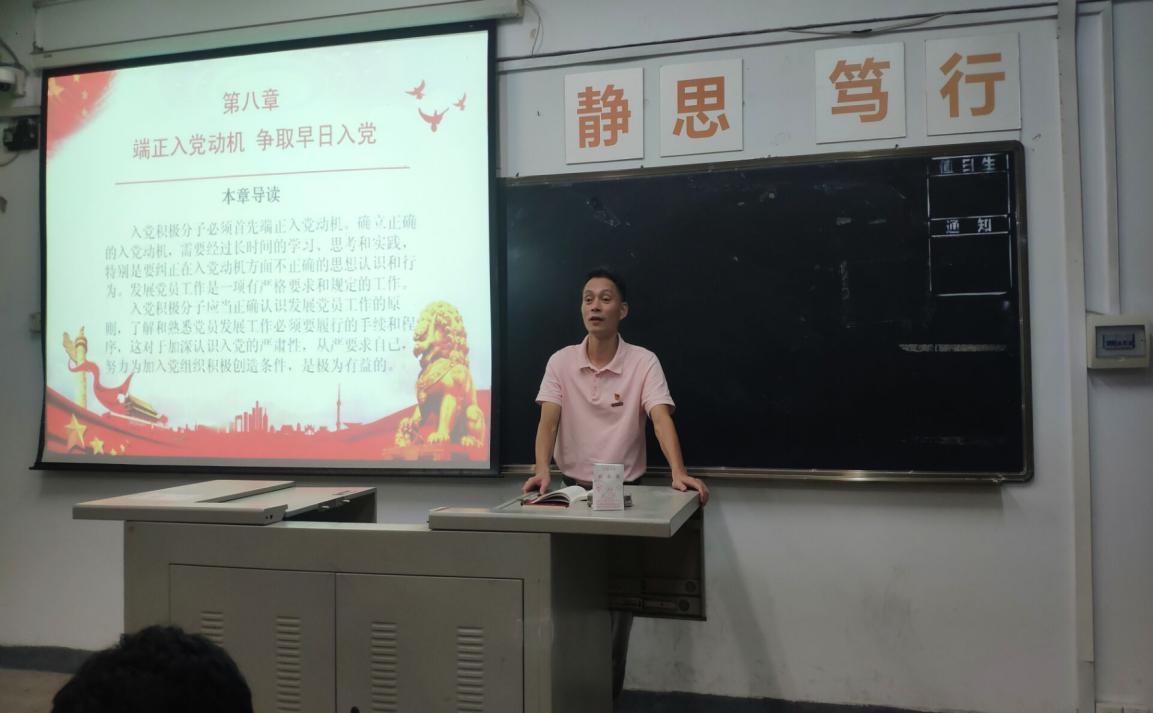 開班儀式后蔡華錦書記為學(xué)員上《明確中國共產(chǎn)黨黨員的條件和義務(wù)、權(quán)利》、《端正入黨動機(jī),爭取早日入黨》的黨課。作為申請入黨和已經(jīng)入黨的人都必須了解中國共產(chǎn)黨黨員的條件,加入黨組織的成員既要履行一定的義務(wù),同時也享有黨章所規(guī)定的一定的權(quán)利。忠實(shí)履行黨員義務(wù)和積極行使黨員權(quán)利是黨員先進(jìn)性的集中體現(xiàn),說明了黨員義務(wù)與權(quán)利兩者間辯證統(tǒng)一、相輔相成的關(guān)系。確立正確的入黨動機(jī),需要經(jīng)過長時間的學(xué)習(xí)、思考和實(shí)踐,特別是要糾正在入黨動機(jī)方面不正確的思想認(rèn)識和行為,同學(xué)們要樹立正確的入黨動機(jī),加強(qiáng)思想修養(yǎng),提高政治素質(zhì),嚴(yán)于律己,樹立為人民服務(wù)的理念,從小事做起,堅(jiān)定理想信念,發(fā)揮黨員的先鋒模范作用。在場的同學(xué)們認(rèn)真聆聽,牢牢記住了蔡華錦書記講授的內(nèi)容和寄予的期望。