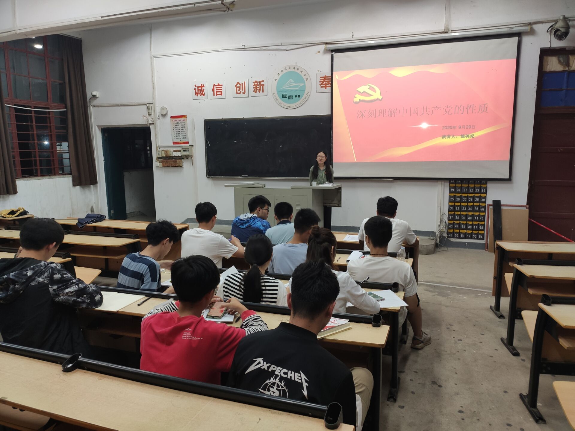 為落實“將骨干培養(yǎng)成黨員、將黨員培養(yǎng)成骨干”雙培養(yǎng)工作,提高黨員發(fā)展對象政治素質(zhì)和黨性修養(yǎng)。2020年10月16日,汽車學(xué)院第一黨支部書記姚美妃在北區(qū)8號樓217教室為發(fā)展對象上《準(zhǔn)確把握中國共產(chǎn)黨的綱領(lǐng)》、《深刻理解中國共產(chǎn)黨的性質(zhì)》的黨課。