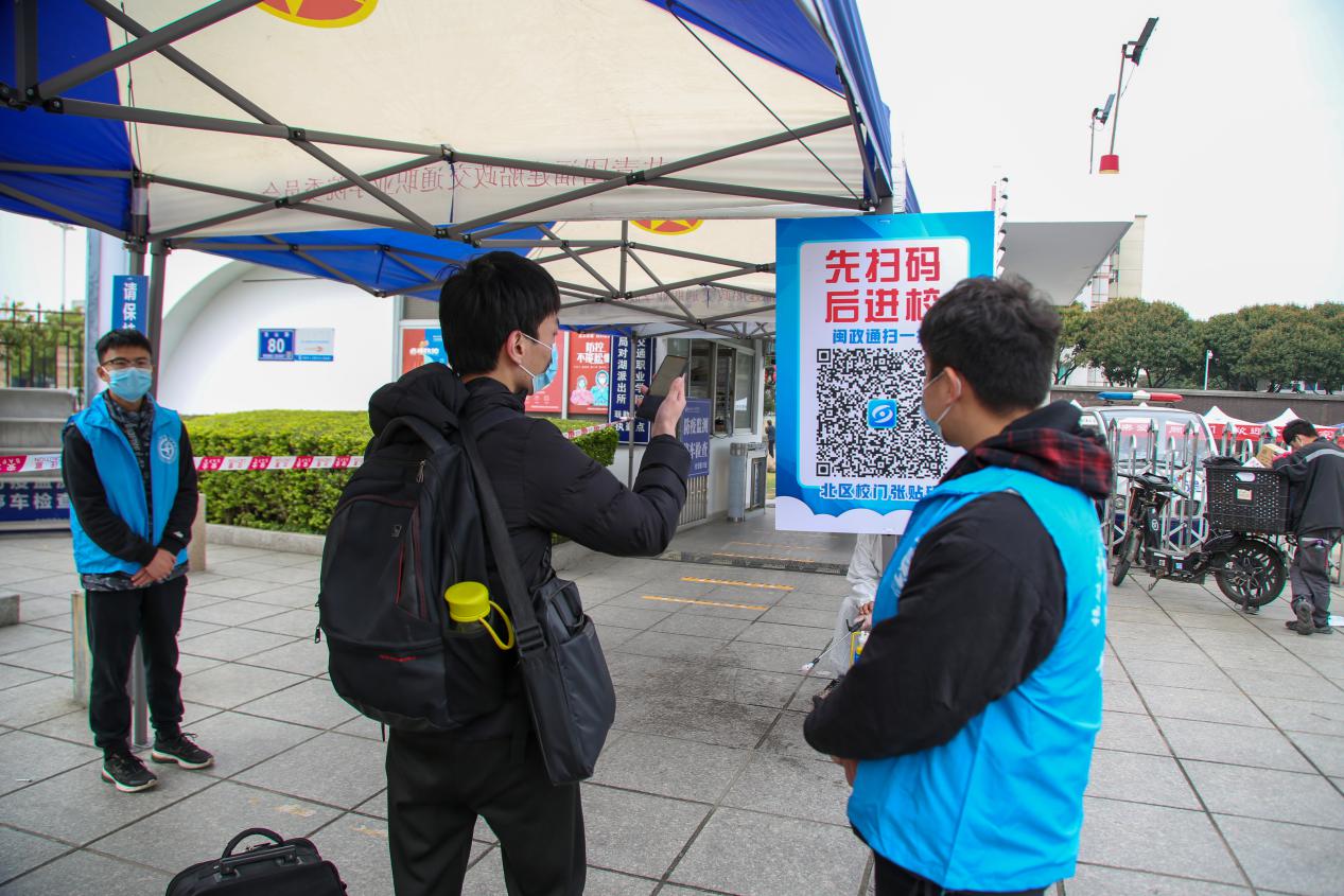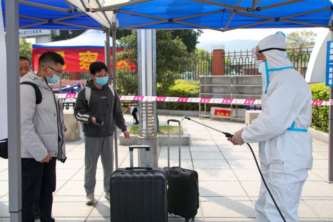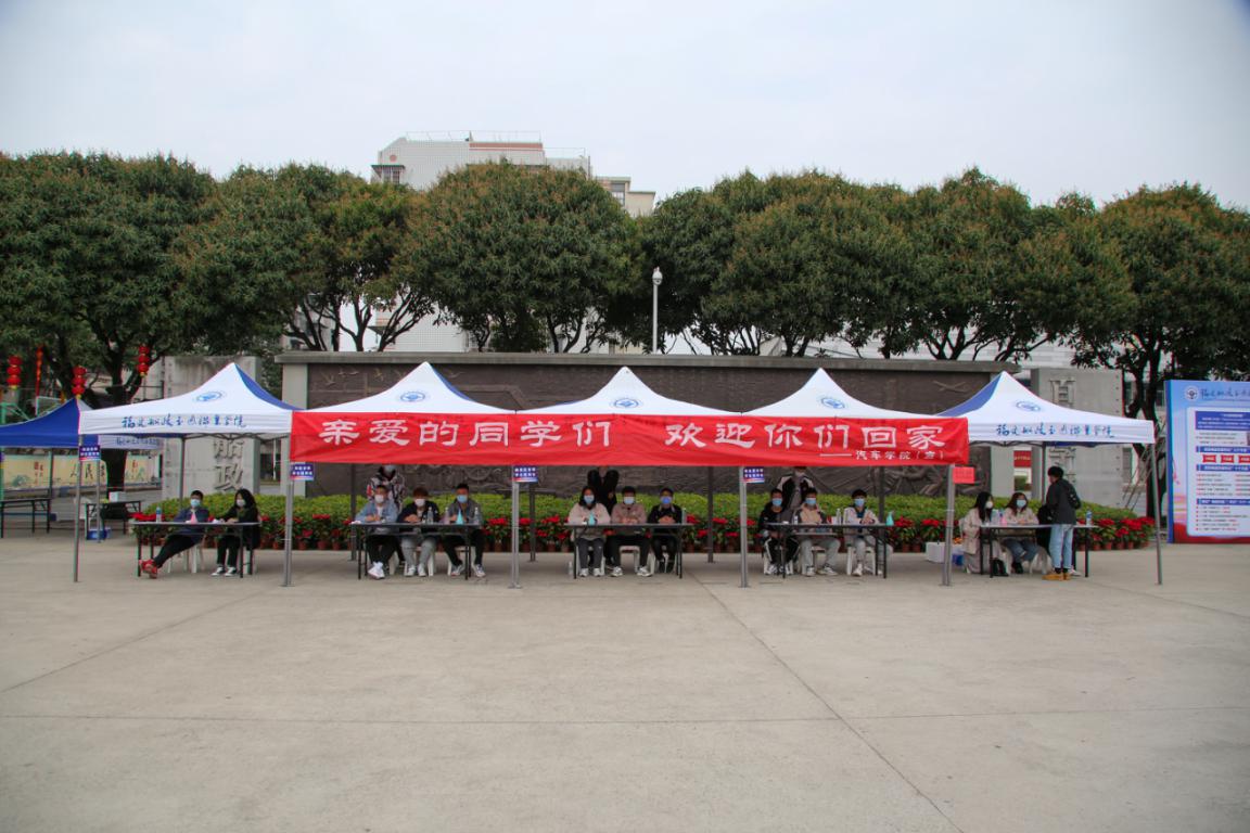 校門口志愿工作者們一絲不茍、細心留意各項工作細節(jié),引導返校的同學打開八閩健康碼掃描二維碼進入校園,對行李進行消殺、幫助同學們提行李、耐心引導學生入校,返?,F(xiàn)場秩序井然、有條不紊。