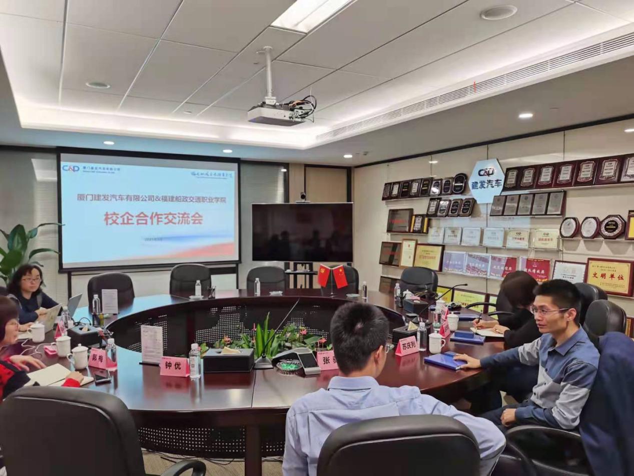 蘇慶列副院長(zhǎng)一行首先前往廈門(mén)建發(fā)汽車(chē)有限公司,與建發(fā)汽車(chē)人力資源總監(jiān)張弛、黨群工作部總經(jīng)理孫梅、校企合作負(fù)責(zé)人吳雨蔣、黃瑞琦等人開(kāi)展校企合作交流會(huì),校企雙方就6年來(lái)的合作成果進(jìn)行了總結(jié),對(duì)未來(lái)合作方向做出規(guī)劃和展望。