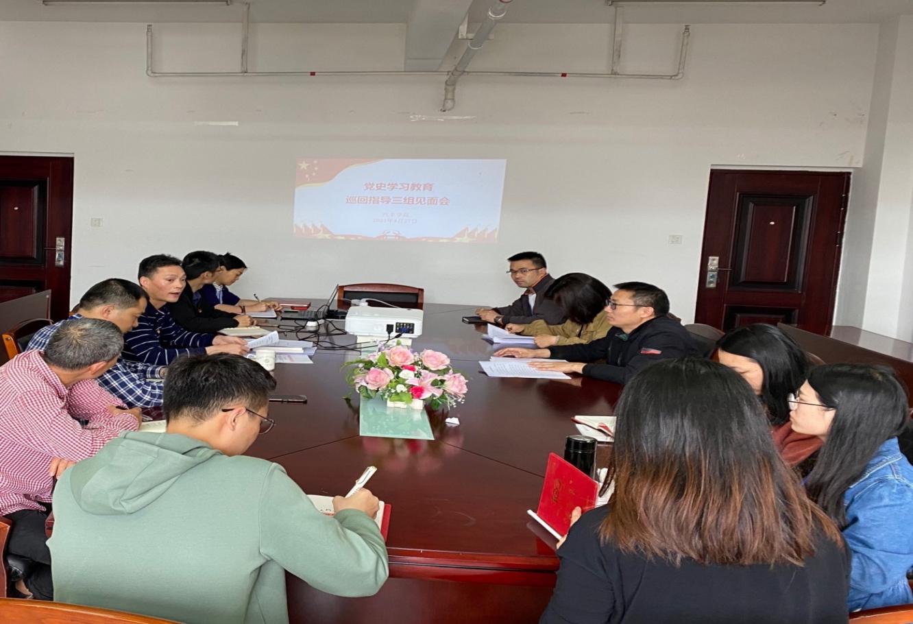 4月28日下午,福建船政交通職業(yè)學(xué)院黨史學(xué)習(xí)教育巡回指導(dǎo)三組一行二人,蒞臨汽車學(xué)院調(diào)研指導(dǎo)工作,并在汽車學(xué)院9樓會議室召開見面會。汽車學(xué)院黨政負責(zé)人、副科級以上干部、黨總支委員、各黨支部委員參加會議。
