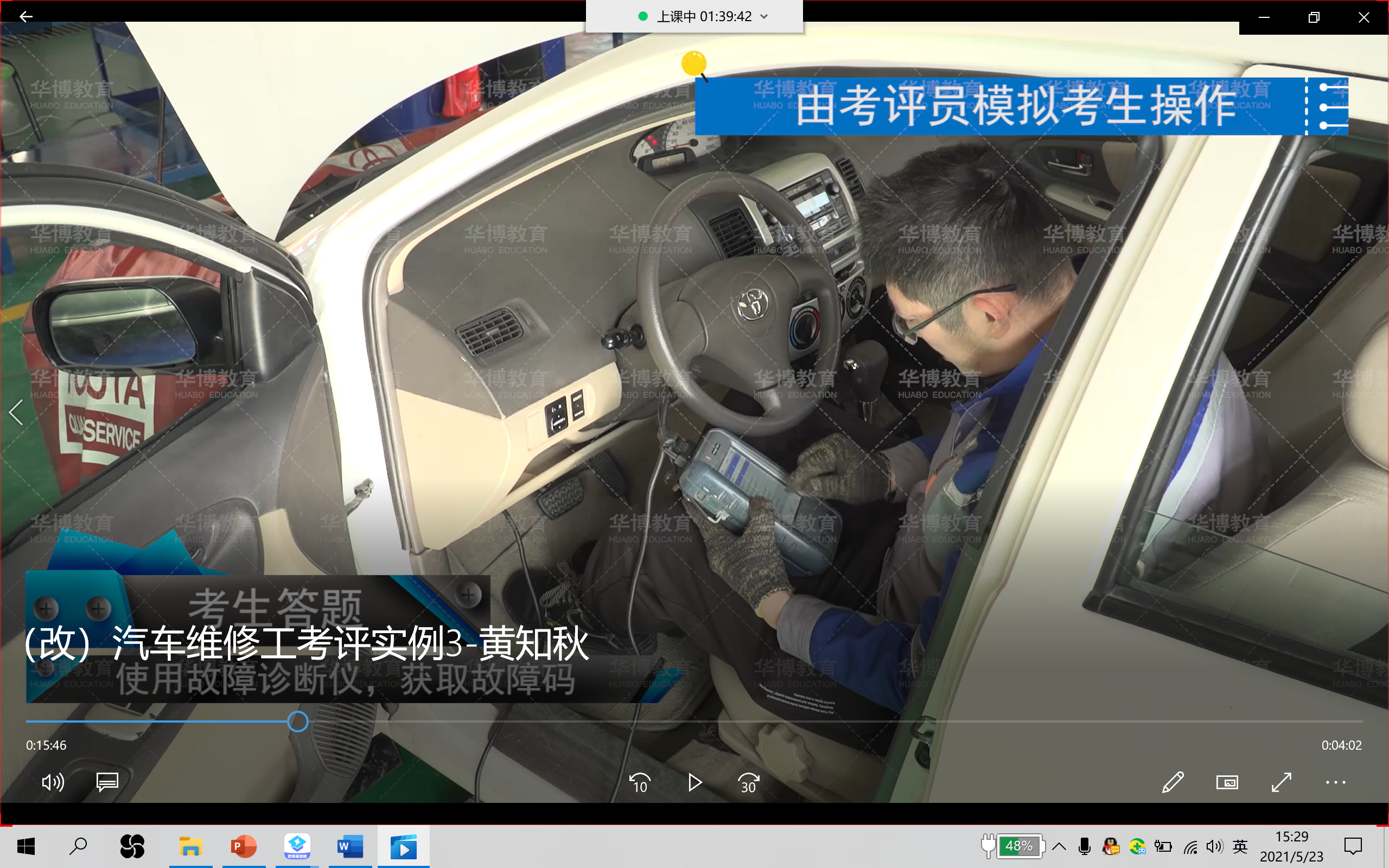 隨后,展示了兩段典型的汽車維修工高級的實操考核視頻,分別是汽車測量或檢驗類考題(曲軸拆裝及檢測)和故障診斷類考題(發(fā)動機怠速不穩(wěn)的故障診斷)。
