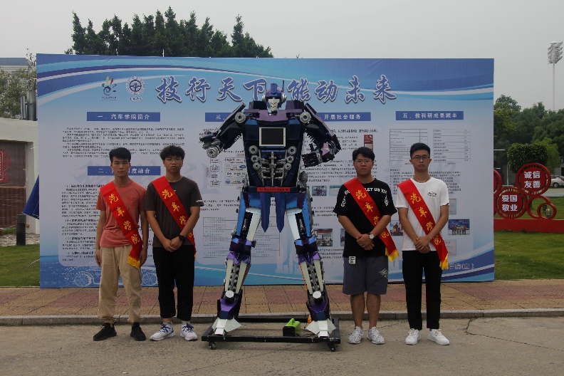 創(chuàng)意設(shè)計大賽初期,在學(xué)院領(lǐng)導(dǎo)的指導(dǎo)下,根據(jù)汽車學(xué)院特色,開展汽車配件DIY設(shè)計活動。鈑金噴漆專業(yè)實訓(xùn)教師陳星老師,利用實訓(xùn)室報廢的汽車配件組織汽車創(chuàng)享俱樂部成員進行設(shè)計開發(fā),確定設(shè)計模型,開展制作工作。在兩個月多的制作時間里,大家克服材料不足,時間緊張等困難,經(jīng)常加班到深夜,陳星老師工作精益求精,發(fā)揮工匠精神,最后打磨出了身高2米5,可以進行人機交互的鋼鐵汽車智能機器人,一經(jīng)亮相,驚艷到了學(xué)校師生。許多老師紛紛發(fā)出預(yù)定需求,后期汽車學(xué)院和汽車創(chuàng)享俱樂部將結(jié)合師生需求,開展小型汽車配件DIY活動。