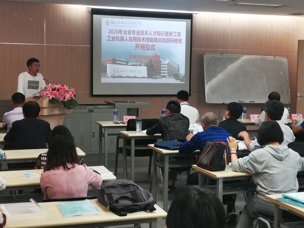 楊開懷院長首先對(duì)參加開班儀式的領(lǐng)導(dǎo)和嘉賓表示歡迎,對(duì)給予此次培訓(xùn)技術(shù)支持的福建閩大科技有限公司表示感謝。接著介紹了機(jī)械與智能制造學(xué)院工業(yè)機(jī)器人專業(yè)的歷史沿革,以及工業(yè)機(jī)器人應(yīng)用技術(shù)領(lǐng)域近年來的發(fā)展前景,我院在工業(yè)機(jī)器人專業(yè)課程優(yōu)化、實(shí)驗(yàn)室建設(shè)、技能競(jìng)賽等方面取得的優(yōu)異成績,并努力致力于為我省乃至全國的工業(yè)機(jī)器人行業(yè)培養(yǎng)高素質(zhì)技能人才。