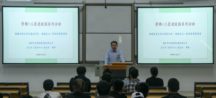 李濤同志是土木工程學(xué)院07級市政工程技術(shù)專業(yè)畢業(yè)生,同時也是福建省重點項目建設(shè)功臣,獲得“福建省五一勞動獎?wù)隆?、“福州市?yōu)秀共青團員”等多項榮譽;成立了“福建省勞模工作室”。在參加工作的10年里先后負責(zé)過多個省、市級重點項目建設(shè);并參與多個省、市級科研項目及地方/行業(yè)標準編制。李濤同志以過來人的身份向?qū)W弟學(xué)妹們分享了他的大學(xué)時代經(jīng)歷,介紹了個人工作履歷,分享了工作后的部分參建項目案例,再結(jié)合上述內(nèi)容,對學(xué)生在校期間生活學(xué)習(xí)、工作后各方面給予建議,最后與學(xué)生進行互動溝通。講座內(nèi)容豐富深刻又接地氣,他結(jié)合自身在學(xué)習(xí)、工作過程中遇到的問題,然后如何解決展開了很多的案例講解,充分展示了當代青年的卓越風(fēng)采,展現(xiàn)了勞動者的靚麗身影,以勞模+工匠精神勇當重任,全體教師和學(xué)生受益匪淺。