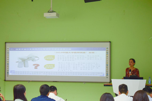楊小霞副教授就新時(shí)代加強(qiáng)高校教師隊(duì)伍建設(shè)的若干思考展開(kāi)講學(xué),從深刻理解習(xí)近平總書(shū)記關(guān)于教師隊(duì)伍建設(shè)的重要論述改革開(kāi)放以來(lái)我國(guó)高校教師隊(duì)伍建設(shè)政策回顧充分認(rèn)識(shí)加強(qiáng)高校教師隊(duì)伍建設(shè)的戰(zhàn)略背景再到進(jìn)一步明確新時(shí)代高校教師隊(duì)伍建設(shè)的突出重點(diǎn)最后到新時(shí)代高校教師隊(duì)伍建設(shè)的路徑選擇,給老師們?cè)敿?xì)講解了新時(shí)代加強(qiáng)高校教師隊(duì)伍建設(shè)應(yīng)當(dāng)如何進(jìn)行。楊小霞副教授還強(qiáng)調(diào):師者,要有仁愛(ài)之心,愛(ài)學(xué)生的情懷應(yīng)當(dāng)具備。