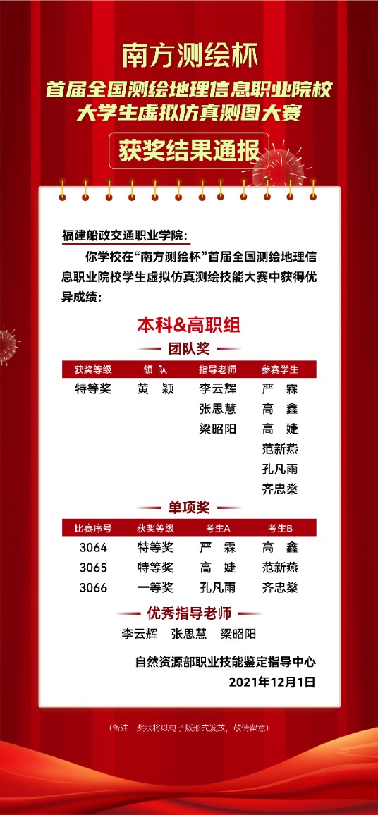 團(tuán)隊(duì)教師參加大學(xué)生虛擬仿真測(cè)圖大賽或團(tuán)體特等獎(jiǎng)