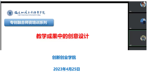 本次培訓(xùn)采用線上講座的形式,特邀全國(guó)知名雙創(chuàng)教育專家謝強(qiáng)老師專題講授創(chuàng)意設(shè)計(jì)課程的建設(shè)方向、建設(shè)方法以及教學(xué)方法,結(jié)合最新的chatGPT技術(shù)對(duì)課程進(jìn)行結(jié)構(gòu)搭建和創(chuàng)意引導(dǎo),為今后我校雙高建設(shè)中的專創(chuàng)融合課程建設(shè)模塊提供了清晰的思路和方向。參加培訓(xùn)的教師表示講座內(nèi)容豐富、思路新穎、案例詳實(shí),為今后專創(chuàng)課程的建設(shè)奠定了較為堅(jiān)實(shí)的基礎(chǔ)。