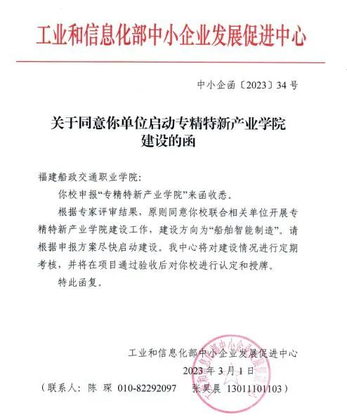 3月1日,工業(yè)和信息化部中小企業(yè)發(fā)展促進(jìn)中心公布首批“專精特新產(chǎn)業(yè)學(xué)院”啟動建設(shè)名單,我校申報“船舶智能制造專精特新產(chǎn)業(yè)學(xué)院”經(jīng)過歷時半年的初審、線上考察、專家初評、專家會評等4輪競爭性遴選,最終從800多所高校中脫穎而出成功獲批立項建設(shè)。此次“專精特新產(chǎn)業(yè)學(xué)院”獲批建設(shè),標(biāo)志著我校在產(chǎn)教融合校企合作提質(zhì)升級上又邁出了堅實的步伐。