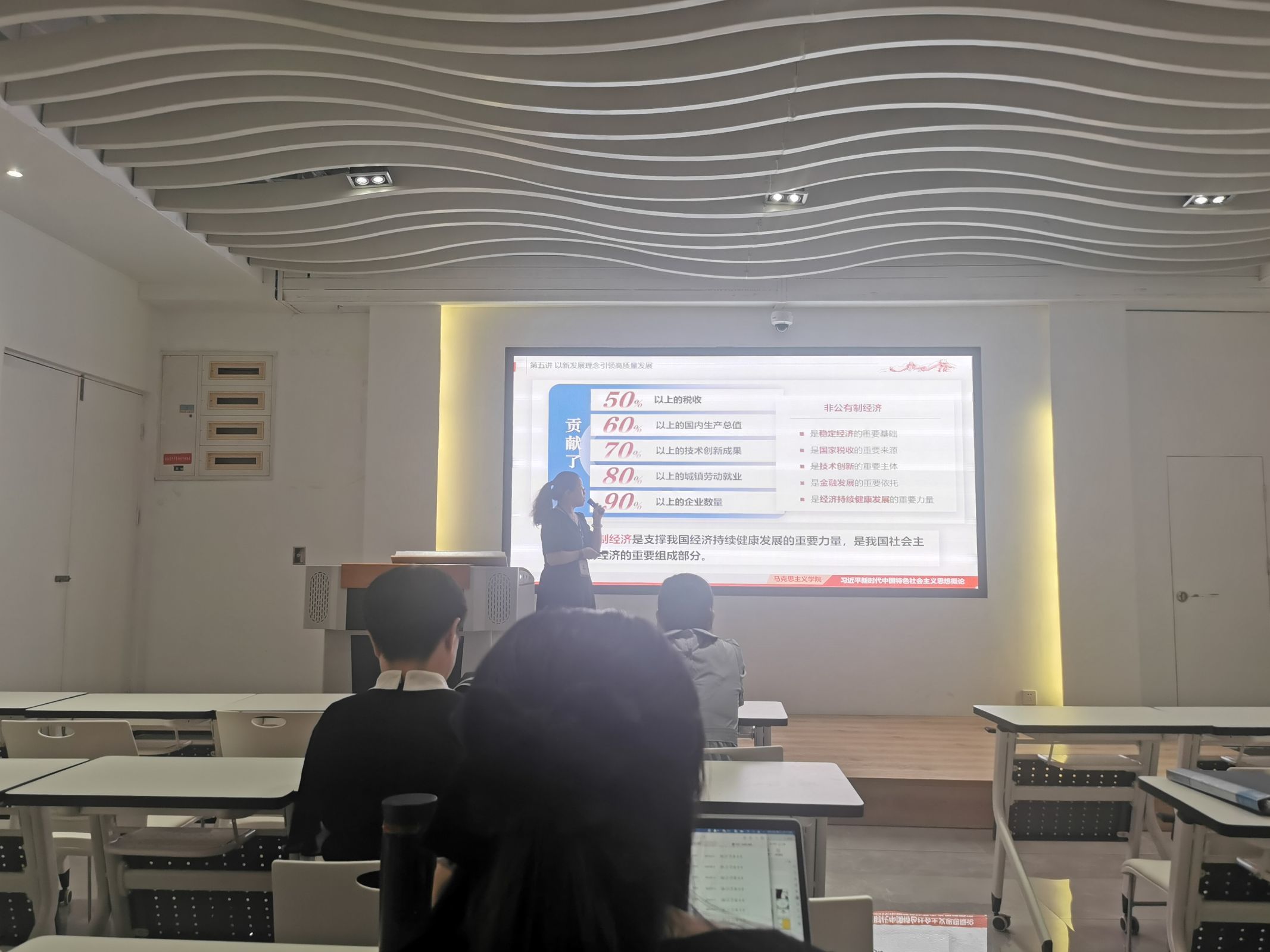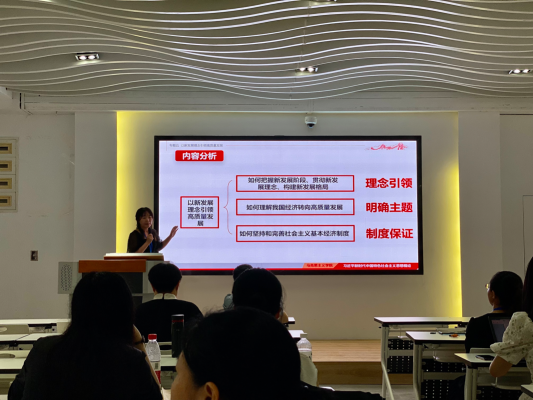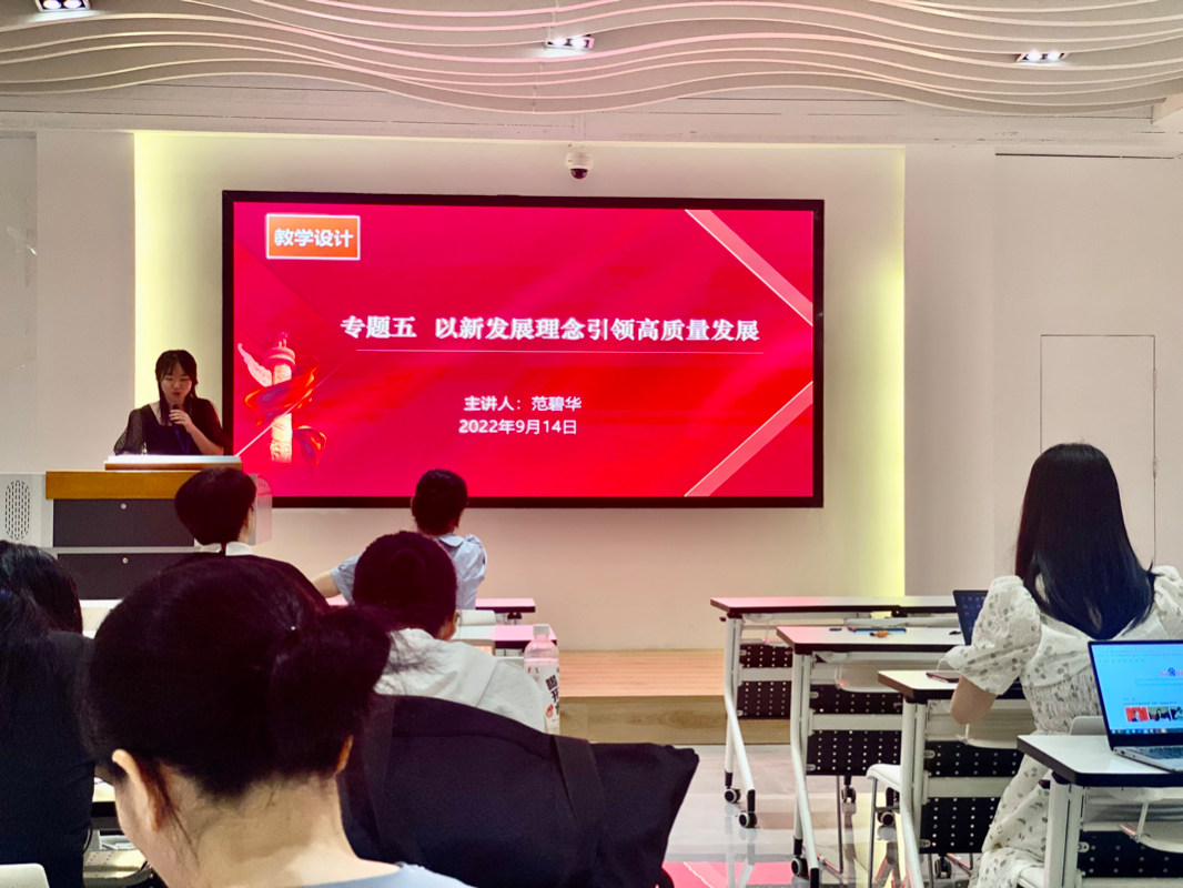 2022年9月14日,馬克思主義學(xué)院“毛澤東思想和中國(guó)特色社會(huì)主義理論體系概論”教研室全體專兼職教師在圖書館三樓黨建館開(kāi)展了“優(yōu)·美”教學(xué)工作坊教研活動(dòng)。本次教研的內(nèi)容是《習(xí)近平新時(shí)代中國(guó)特色社會(huì)主義思想概論》課的專題五————以新發(fā)展理念引領(lǐng)高質(zhì)量發(fā)展,由范碧華老師擔(dān)任主講。