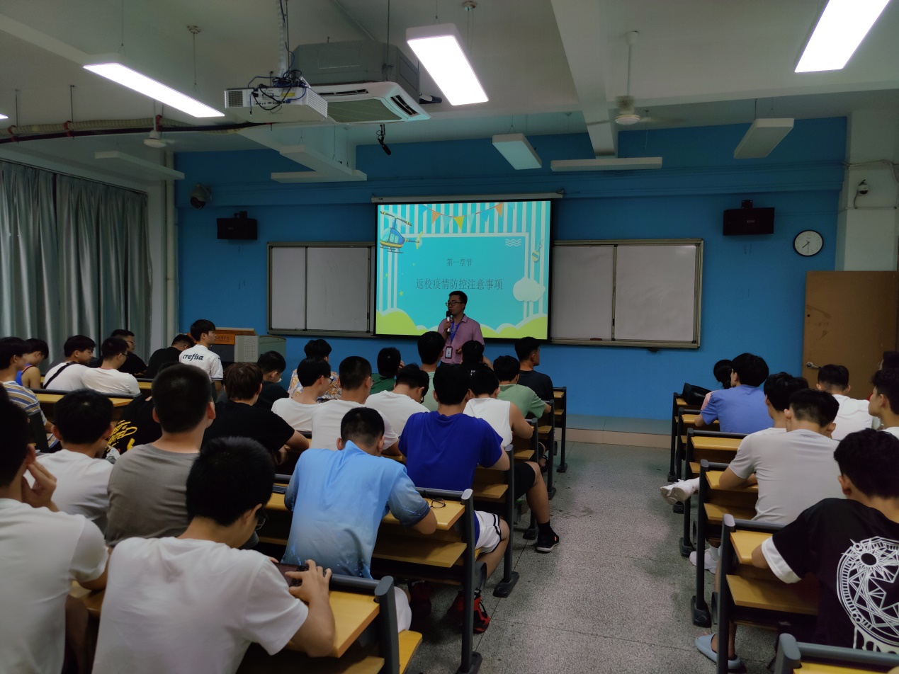 9月5日晚,輔導員范聲斌、輔導員陸李欽及各班班主任,分別在31號樓308教室,給2020級全體學生召開反詐騙安全教育暨開學第一課主題班會。輔導員、班主任從返校疫情防控注意事項、傳染病防控知識教育、法律法規(guī)知識教育