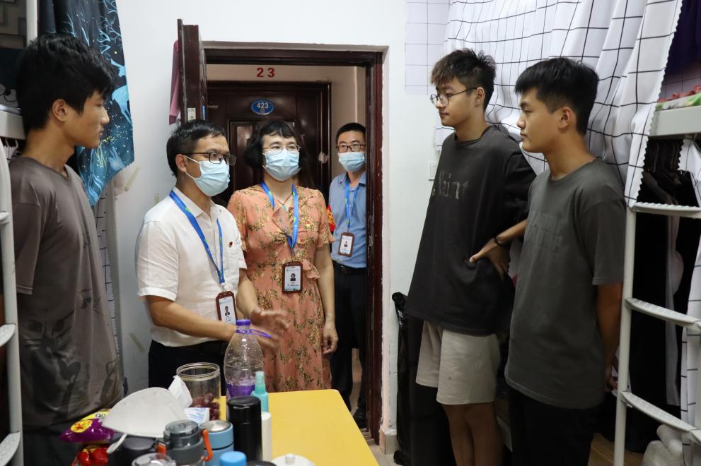 學(xué)校領(lǐng)導(dǎo)關(guān)切詢問(wèn)了同學(xué)們的日常作息飲食、學(xué)習(xí)生活和宿舍防疫管理等情況,叮囑同學(xué)們要按照要求對(duì)宿舍進(jìn)行全面消殺,平時(shí)養(yǎng)成良好的衛(wèi)生習(xí)慣,正確看待疫情常態(tài)下的學(xué)生封閉管理和各項(xiàng)差峰安排,利用有限條件鍛煉身體。