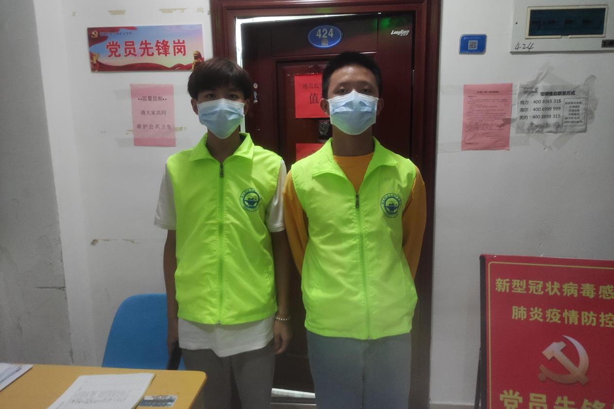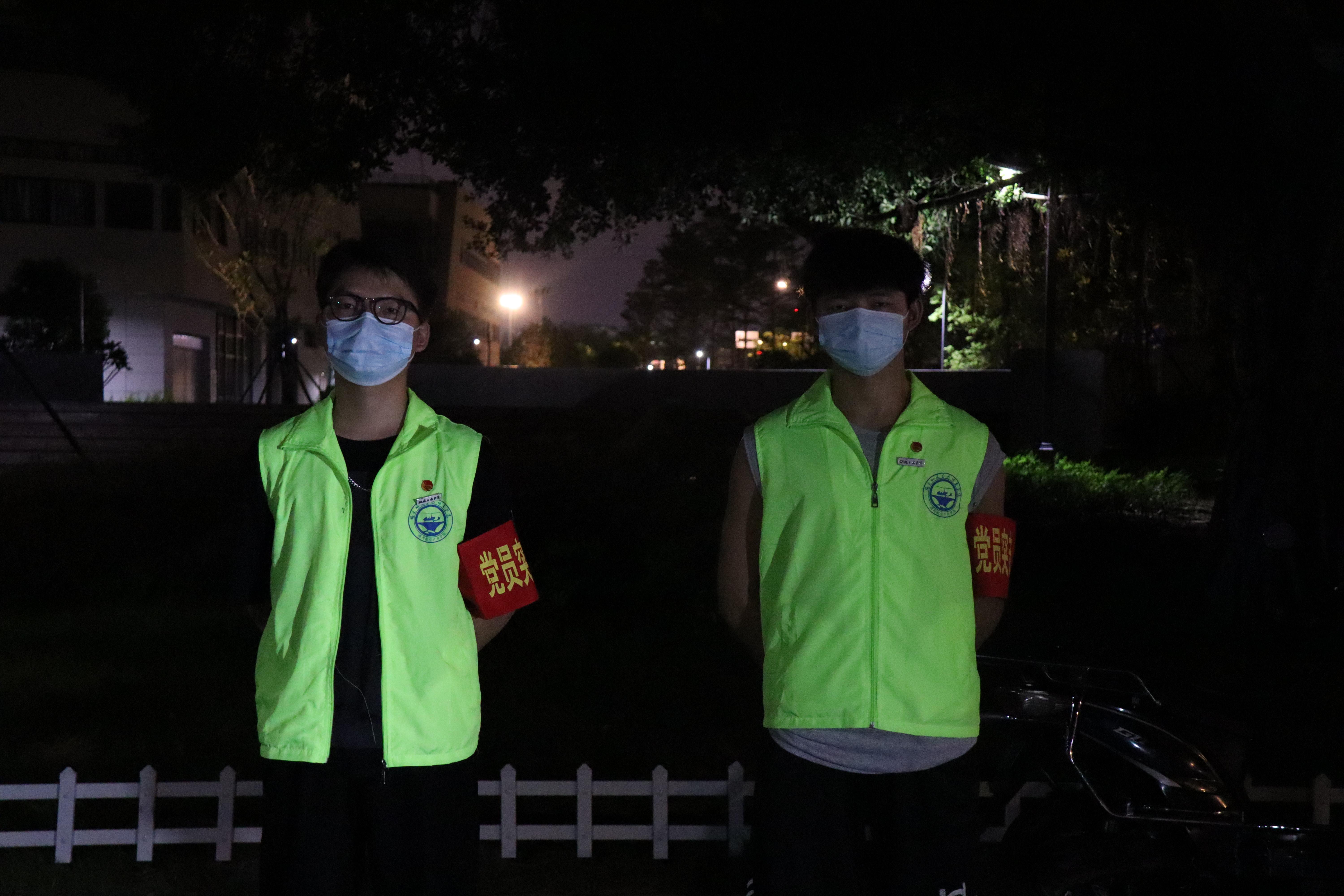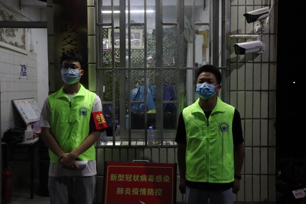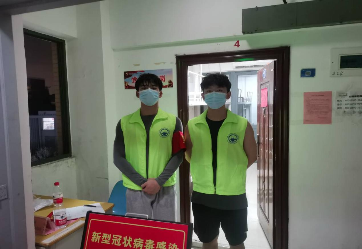 防疫監(jiān)督突擊隊的隊員們每日在宿舍樓下站崗執(zhí)勤,登記同學(xué)們的出入情況加強宿舍門禁管理。