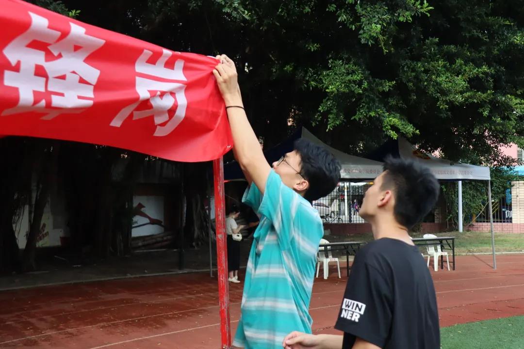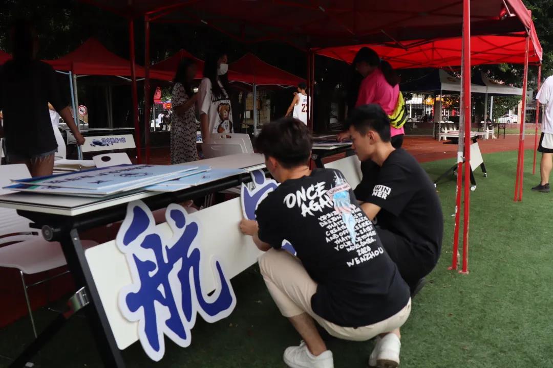 1014日下午,迎新工作準備的最后一天。學生干部和助教在蒙蒙細雨下搭建著迎新點,為明日迎接新同學做著最后的準備。