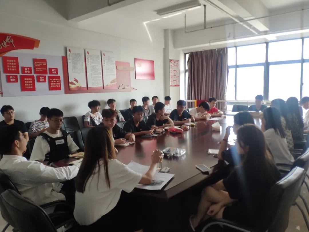 109日中午,輔導員、學生干部、新生助教在會議室,共同商議新生入學報到流程、布置,以及準備相關材料。