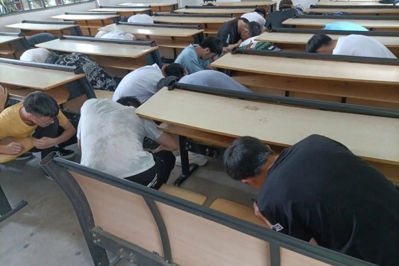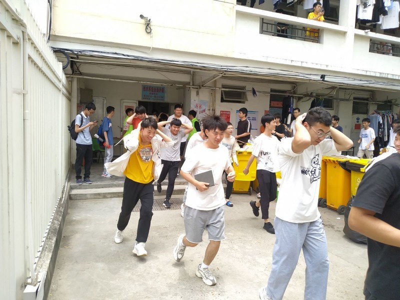 一陣警報聲拉開了演練的序幕,本次演練主要包括避險、疏散兩個流程。演練開始后,全體同學在班委的組織下,迅速就地進行應(yīng)急避險。在收到緊急避險結(jié)束立即疏散的指令后,大家迅速有序地從教室、宿舍撤離,沿著規(guī)劃好的路線迅速撤離,抵達指導(dǎo)避難點。