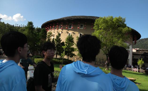 移步深入,土樓獨特的建筑布局令人嘆為觀止。那堅實高聳的圓形或方形外墻,不僅是抵御外敵的屏障,更是家族凝聚的象征;內(nèi)部層疊環(huán)繞、秩序井然的 “樓中樓” 結(jié)構(gòu),宛如一座立體的村落,展現(xiàn)了先民們非凡的空間規(guī)劃智慧與和諧共生的理念。仰望這歷經(jīng)風雨依然巍然屹立的宏偉建筑,其嚴謹?shù)臉?gòu)造、精巧的細節(jié)以及所蘊含的深厚文化內(nèi)涵,無不彰顯著前代工匠追求極致、精益求精的偉大工匠精神,這份跨越時空的堅守,讓成員們深切感受到傳統(tǒng)文化中 “守正創(chuàng)新” 的力量,也更加堅定了用專業(yè)技能保護文化遺產(chǎn)的決心。