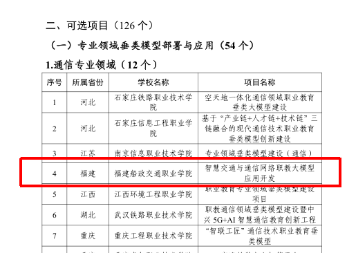 近日,教育部職業(yè)教育發(fā)展中心公布了“職業(yè)教育專業(yè)領(lǐng)域垂類模型建設(shè)項目(第一批)”入選名單,由信息與智慧交通學院團隊申報的“智慧交通與通信網(wǎng)絡(luò)職教大模型應用開發(fā)”項目成功入選,成為通信專業(yè)領(lǐng)域重點建設(shè)項目之一。