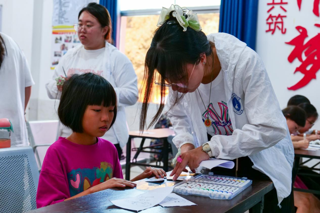 圖為實(shí)踐團(tuán)在三溪鄉(xiāng)溪源村開(kāi)展課堂活動(dòng)的畫(huà)面