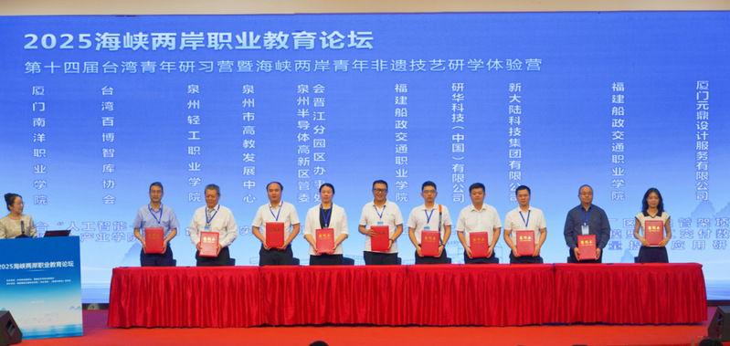 7月15日-17日,2025海峽兩岸職業(yè)教育論壇在福建省福州市成功舉行。此次論壇以“AI賦能職業(yè)教育”為主題,由中華職業(yè)教育社、福建省中華職業(yè)教育社聯(lián)合臺(tái)灣多家社會(huì)團(tuán)體共同主辦,福建船政交通職業(yè)學(xué)院承辦,《教育與職業(yè)》雜志社協(xié)辦。論壇涵蓋開幕式、揭牌儀式、項(xiàng)目簽約、學(xué)術(shù)報(bào)告、嘉賓對(duì)話、文化活動(dòng)、現(xiàn)場教學(xué)等多項(xiàng)議程,來自兩岸的職業(yè)教育專家、學(xué)者、院校和企業(yè)代表等230余人出席活動(dòng)。